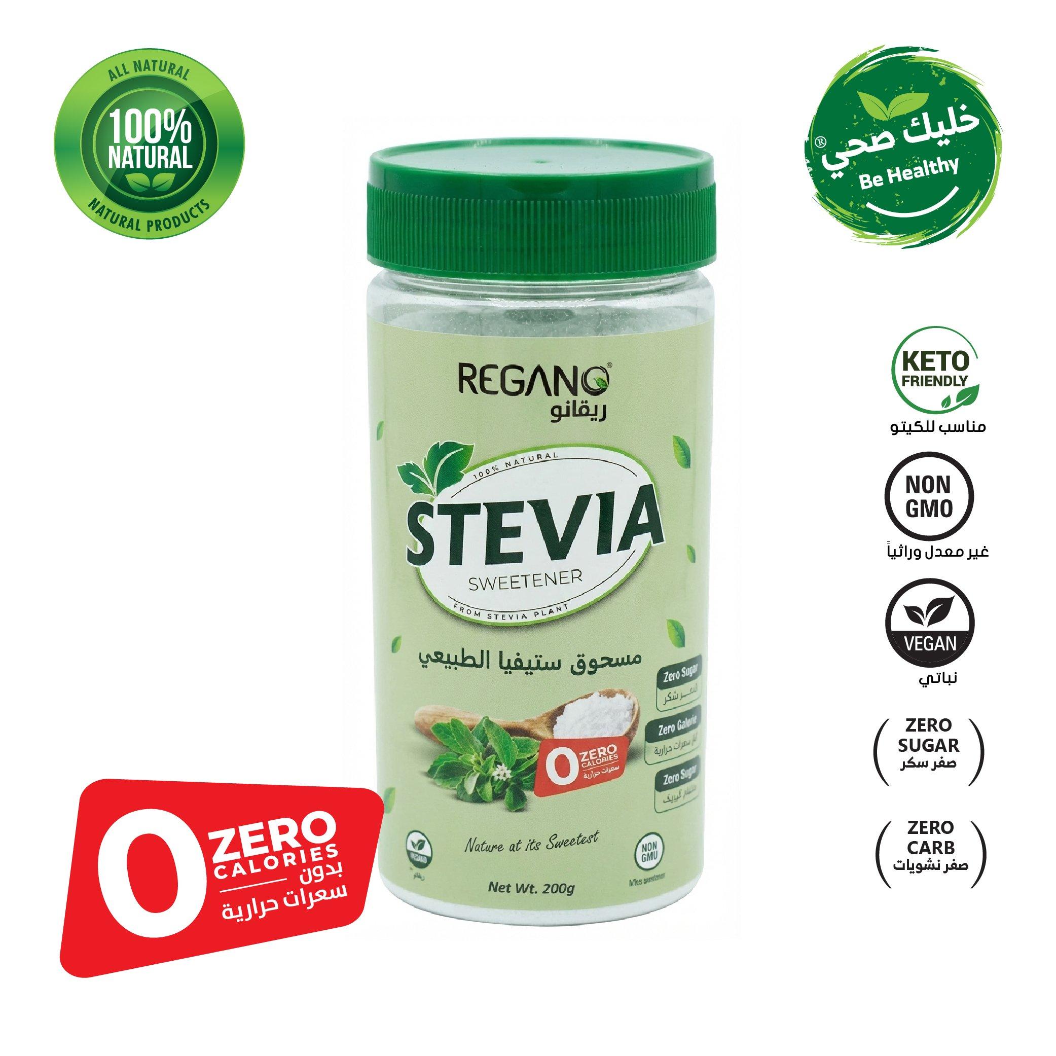 حوّل حياتك إلى نمط أكثر صحة مع محلي مسحوق ستيفيا الطبيعي 200جرام من ريقانو، استمتع بحلاوة طبيعية بدون أي شعور بالذنب