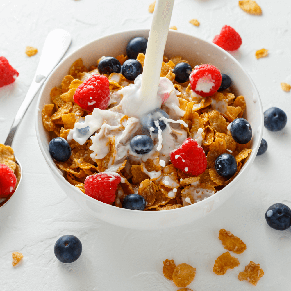 - الكورن فلكيس يعتبر وجبة خفيفة جاهزة للاستهلاك، لذا لا يلزم أي جهد في التحضير يمكنك تناولها كما هي، أو إضافة الحليب أو الزبادي إليها لتحصل على وجبة فطور مغذية