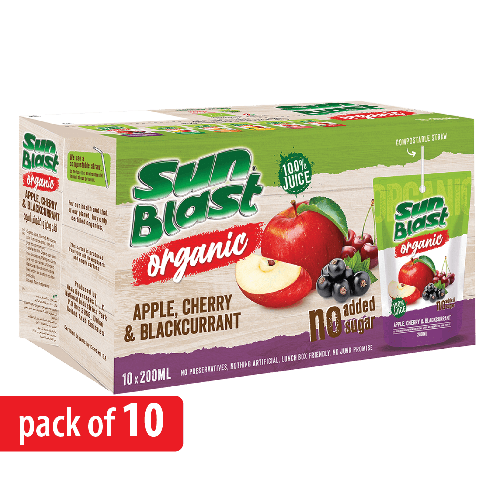 عصائر طبيعية , امنح يومك لمسة مميزة مع عصير التفاح، الكرز، والكشمش الأسود العضوي من صن بلاست، مزيج متقن يجمع بين حلاوة التفاح الطبيعية، نكهة الكرز الغنية، وقوة الكشمش الأسود ليمنحك تجربة طعم مليئة بالحيوية، مشروب طبيعي 100% وخالٍ من السكريات المضافة أو الإضافات الصناعية، ليقدم لك توازنًا رائعًا بين الطعم والفائدة.