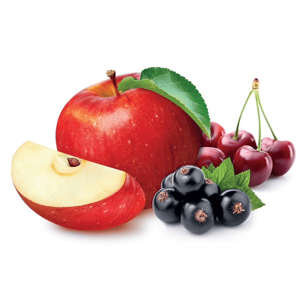 - مزيج عضوي متكامل يجمع بين التفاح والكرز والكشمش الأسود ليمنحك نكهة جريئة ومنعشة في نفس الوقت.